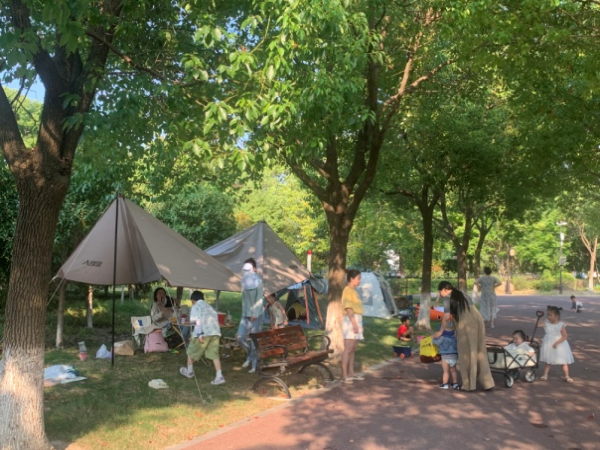 園內(nèi)游人如織,有的在遛娃、戲水、拍照,有的在群藝館觀摩字畫、參觀非遺展覽,有的在月亮廣場欣賞惠民演出,還有人在星空下拉起幕布觀看電影……優(yōu)美宜人的自然景色與豐富多彩的文化景觀為市民帶來了絕佳的出游體驗。
