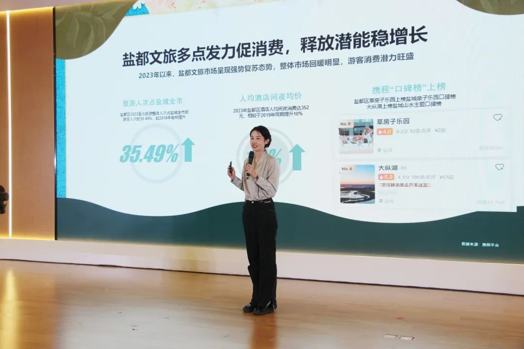 在推介會(huì)上,攜程集團(tuán)政府合作部項(xiàng)目總監(jiān)王焱發(fā)布“鹽都文旅及攜程集團(tuán)2023年戰(zhàn)略合作”重點(diǎn)內(nèi)容,深度剖析雙方未來合作的藍(lán)圖。她提到,2023年以來,鹽都文旅市場(chǎng)呈現(xiàn)強(qiáng)勢(shì)復(fù)蘇態(tài)勢(shì),整體市場(chǎng)回暖明顯。攜程一直都是鹽城文旅發(fā)展道路上堅(jiān)實(shí)的合作伙伴。去年雙方共同打造的“到鹽城·嗨周末”品牌獲評(píng)文旅部2022年旅游宣傳推廣優(yōu)秀案例。而今年,攜程將繼續(xù)深耕鹽城文旅,在全市文旅資源的加持之下,依托2023年攜程集團(tuán)振興A計(jì)劃開拓區(qū)縣合作,與鹽都文旅建立戰(zhàn)略合作關(guān)系,協(xié)同并進(jìn)共育花開。攜程集團(tuán)將聚合站內(nèi)外流量資源,從產(chǎn)品、營(yíng)銷、消費(fèi)三大層面開足馬力驅(qū)動(dòng)文旅建設(shè)加速度,“串珠成鏈”,多措并舉推動(dòng)鹽都文旅造就高質(zhì)量發(fā)展格局。