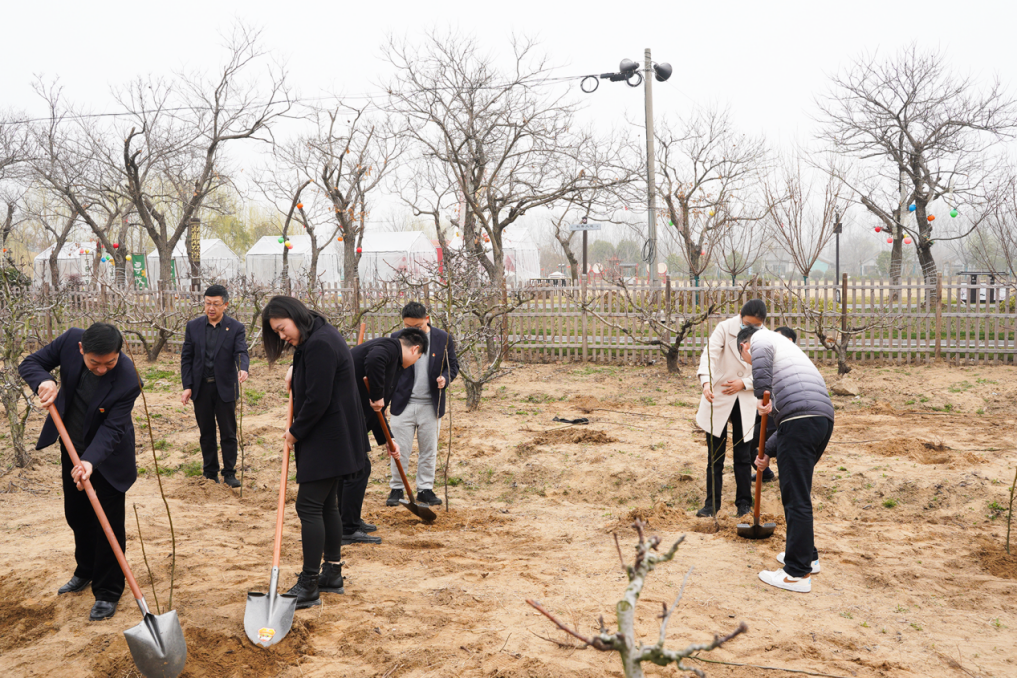 為積極踐行綠色發(fā)展理念,312日上午,城鎮(zhèn)化集團(tuán)農(nóng)業(yè)發(fā)展銀行鹽都支行龍岡桃花源成功舉辦“植此青綠 紅心向黨植樹節(jié)活動(dòng)。農(nóng)業(yè)發(fā)展銀行鹽都支行行長(zhǎng)曹瑩城鎮(zhèn)化集團(tuán)黨委副書記、總經(jīng)理?xiàng)钛?,副總?jīng)理陳衛(wèi)平參加?;顒?dòng)現(xiàn)場(chǎng),雙方分工協(xié)作、扶苗培土,共同栽下了由江蘇省農(nóng)科院·鹽城龍岡桃花源果品產(chǎn)業(yè)研究院精心培育蘇翠一號(hào)梨樹苗。
